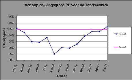 Eind december 2010 was de dekkingsgraad 99,3%. Eind januari 2011 was de dekkingsgraad 103,1%, eind februari was de dekkingsgraad 103,2% en eind maart is de dekkingsgraad verder gestegen naar 106,9. Deze stijging komt vooral door de gestegen rente.