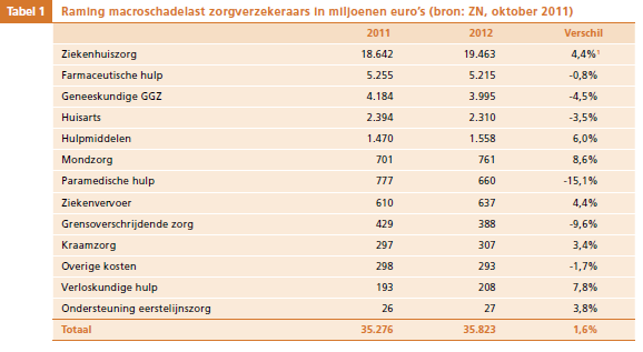 Daarnaast wordt rekening gehouden met de groei van het gebruik van implantaten en een trendmatige ontwikkeling van 4,5%. De kosten voor mondzorg stijgen als gevolg hiervan in 2012 met circa 8,5% ten opzichte van 2011. De macroschadelast zorgverzekeraars komt volgens Zorgverzekeraars Nederland voor mondzorg hiermee in 2012 op 761 miljoen euro.